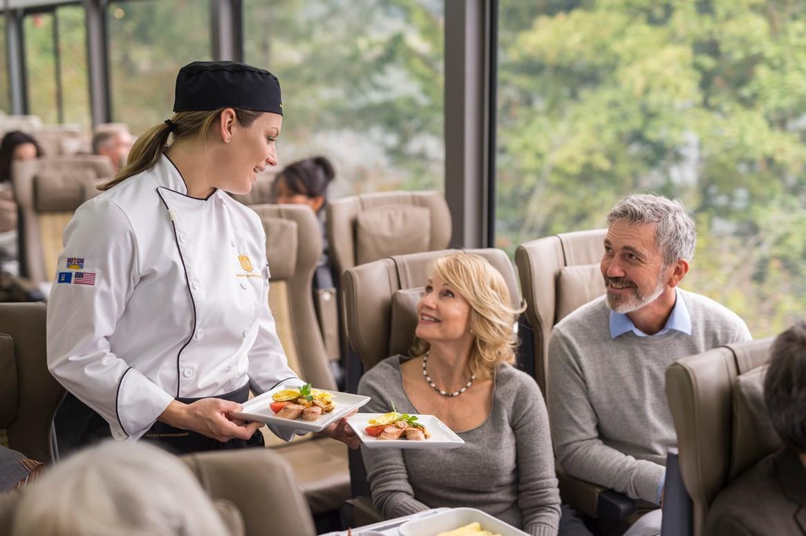 Rocky Mountaineer offers two levels of service: SilverLeaf and GoldLeaf. Both come with friendly Hosts, gourmet breakfasts and lunches, and endlessly amazing views.